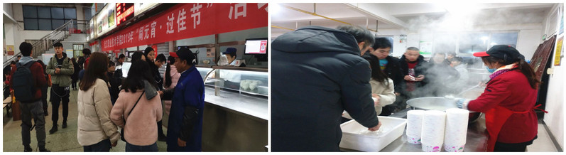 东一食堂、东二食堂、葛店食堂是“幸福品元宵”的活动现场。晚上18:00,“幸福品汤圆”活动正式开始,食堂师傅现场展示汤圆的制作工艺,汤圆色泽洁白,形状浑圆,口味纯正,香气扑鼻,美味自不必说,活动一开始就吸引了众多学子前来品尝,受到了师生的一致称赞和欢迎。刚走进食堂,就嗅到了汤圆散发出来的淡淡的香气,前来品尝的师生纷纷为食堂的做法点“赞”。