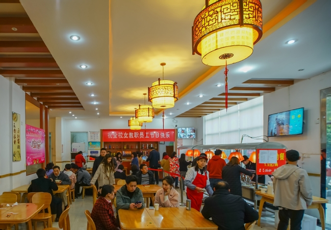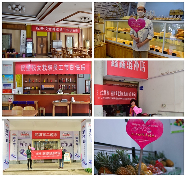 节日当天,全体女教职工持校园卡,在校内食堂、超市、水果店、美容美发店、蛋糕店、缝补店等场所消费,均可享受不同程度的打折,尤其是在部分食堂和部分美发店推出了“免费品尝”和“免费理发”活动,科学、健康、营养、暖心的服务深受女教职工的欢迎。