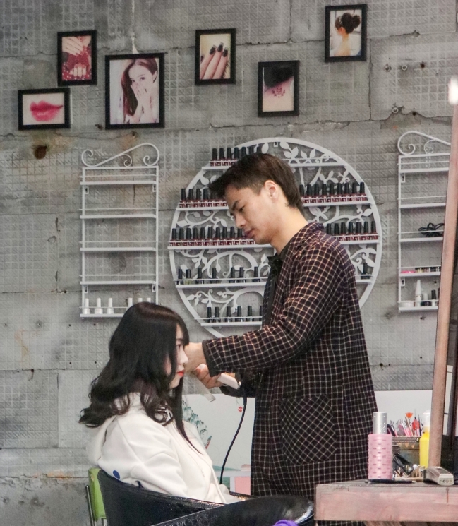 女教职工在校内美发店享受免费服务