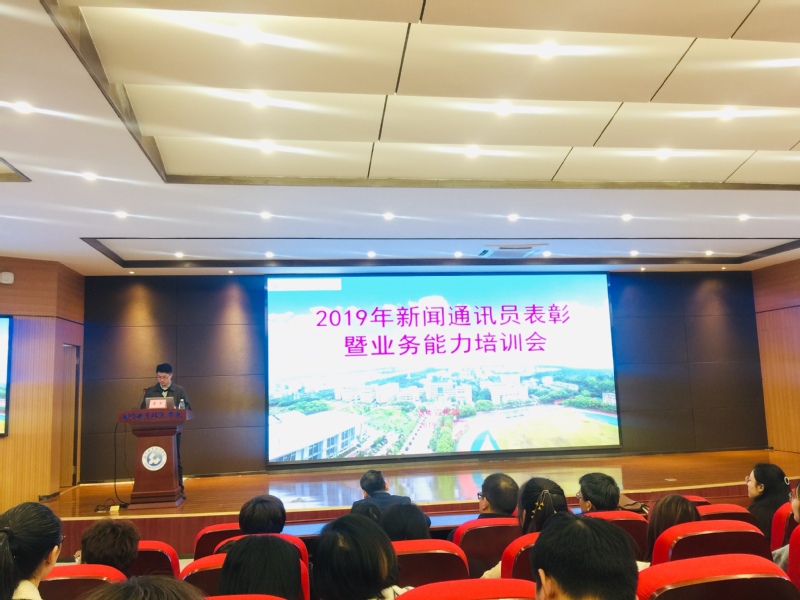 武职后勤网讯(通讯员陈婷婷)为了提升我校教工通讯员和学生记者的新闻素养及新闻采写能力,3月18日下午,学校党委宣传部举办的“2019年新闻通讯员表彰暨业务能力培训会”在我校凌峰楼C11道德讲堂召开。党委宣传部部长刘合强同志主持了会议。党委宣传部全体人员,各单位、各部门教工通讯员,大学生记者团学生记者参加培训。后勤服务中心也派出十余名通讯员参加了此次培训。