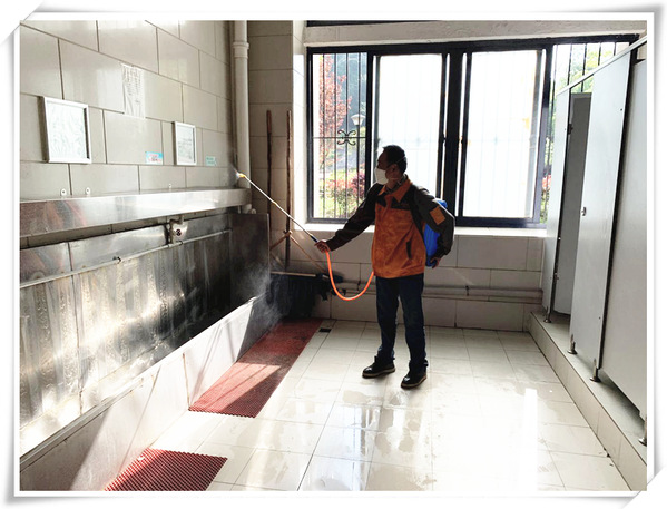 4月17日上午,物业中心员工使用校医院专业配备的消毒药品,分头行动,严格按照药品喷洒规则和消杀顺序对我校东、西校区公共走道、楼梯、卫生间、垃圾桶等,逐一进行了全面喷洒消毒。他们认真喷洒,不留死角,不留盲点,圆满地完成了这次春季灭蚊虫、灭病菌的药物喷洒工作,为全体师生创造了卫生整洁的教学、生活环境。