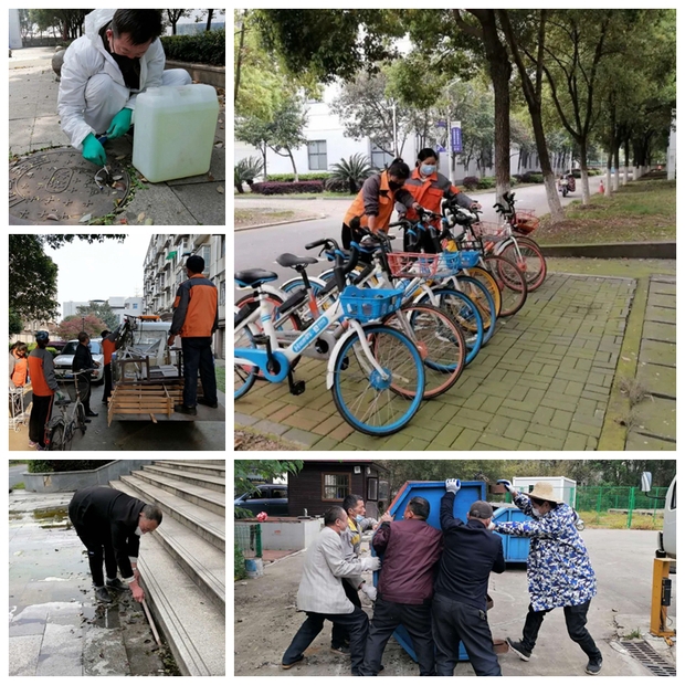 4月初,后勤服务中心物业管理部门按照学校党委和后勤服务中心班子提出的要求,召开视频会议,确定宣传动员优化兵力、条块结合精准施力、区域突击全面发力的“三力工作法”。随后,组织近40名物业“尖兵”,在关山校区开展室内室外环境消杀、垃圾站和窨井沟渠清理等防疫工作,以及楼栋保洁、草坪修剪、植物养护及病虫害防治、杂物清运、共享单车整治等整治校园环境系列优化活动。在活动中,物业“尖兵”们展现了高度负责的主人翁精神、吃苦耐劳精神、共同担当的团队协作精神、敢打硬拼的奋斗精神,为深入开展爱国卫生运动打下了坚实基础。