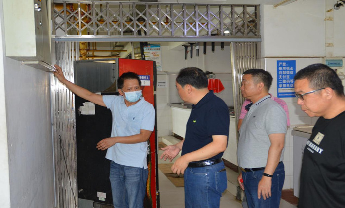 检查过程中,刁元斌对食堂疫情防控、食品留样、生熟分开、水电气安全管理、台账记录等执行情况进行了细致的检查,对食堂的重点设备燃气和电力的日常安全使用管理情况进行了详细询问,查看了日常管理留痕及台帐。进入各供餐窗口和操作间重点检查燃气和甲醇燃料、电线、电器规范使用情况,可能存在的安全隐患及防范措施等情况。