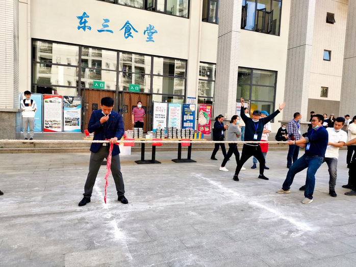 (通讯员 王蕾)秋高气爽,丹桂飘香。10月27日下午,餐饮管理办公室在东三食堂小广场上组织开展的员工拔河比赛活动取得圆满成功。