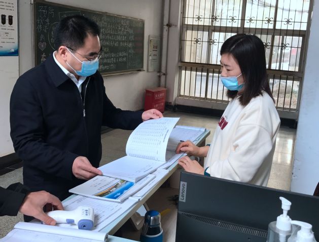 在东十公寓值班处,鄢烈洲与保卫处、后勤保障处负责人与宿管进行了交流,仔细检查防疫消杀登记台账及学生进出登记本,要求宿管积极配合相关部门做好公寓疫情防控工作。
