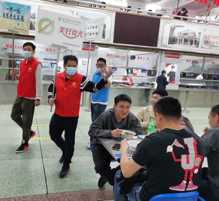 系列活动的第一场于11日在东一食堂开始。活动现场,热烈非凡。下沉的党员干部有后勤保障处副处长刘文韬、餐饮管理办公室主任耿品丽、综合办公室副主任王臣、餐饮管理办公室入党积极分子梁磊和学校建设办公室干部张鹏以及学生志愿者。
