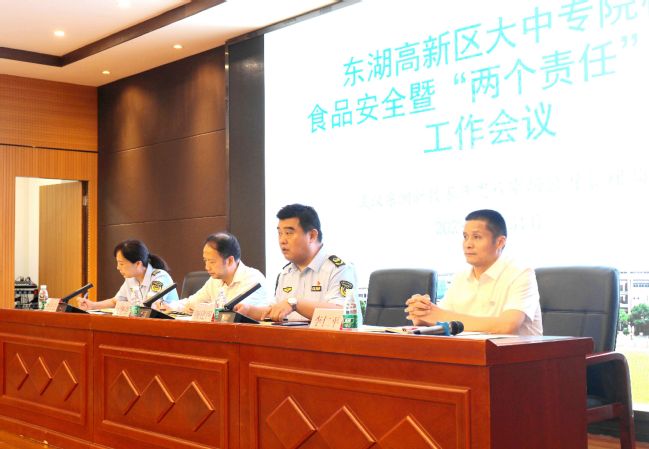 武汉职业技术学院副校长李仁平代表学校对各单位、各大中专院校与会人员表示欢迎。他表示,多年来,在各级政府部门领导下,武汉职业技术学院以习近平总书记关于食品安全工作“四个最严”的重要指示精神为根本遵循,全面落实学校主体责任,织牢织密安全监管工作网。学校将全面贯彻此次会议精神,学习借鉴各兄弟院校的经验做法,与各单位一起守护校园食品安全,保障师生安全健康。