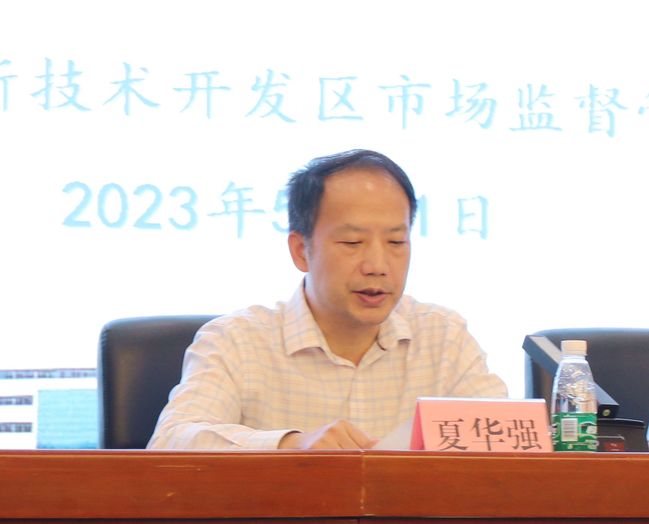 东湖新技术开发区市场监督管理局局长夏华强,食品安全协调和监管科负责人及相关人员出席会议,东湖新技术开发区市场监督管理局副局长颜建四主持会议。