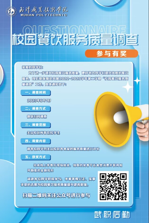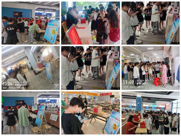 在各个食堂就餐大厅,广大学生积极扫码、认真填写“满意度调查问卷”,将自己对食堂服务的评判反馈给餐饮管理办公室。各个活动现场,参加活动的师生抽取1-10元面额不等的“代金奖券”。有几位抽到奖券的学生说,感谢学校对食堂伙食的关心、对学生饮食健康的爱心,希望食堂继续提供美味的食品和优质的服务。一时间,人头攒动,气氛热烈。