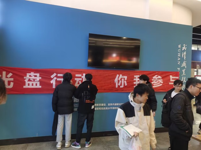 (通讯员 曹阳)2025年12月17日中午,武汉职业技术大学一品轩食堂内人头攒动,“光盘活动 你我同行”的红色横幅前,师生们纷纷提笔签名,标志着我校本学期第一次光盘行动正式拉开帷幕。